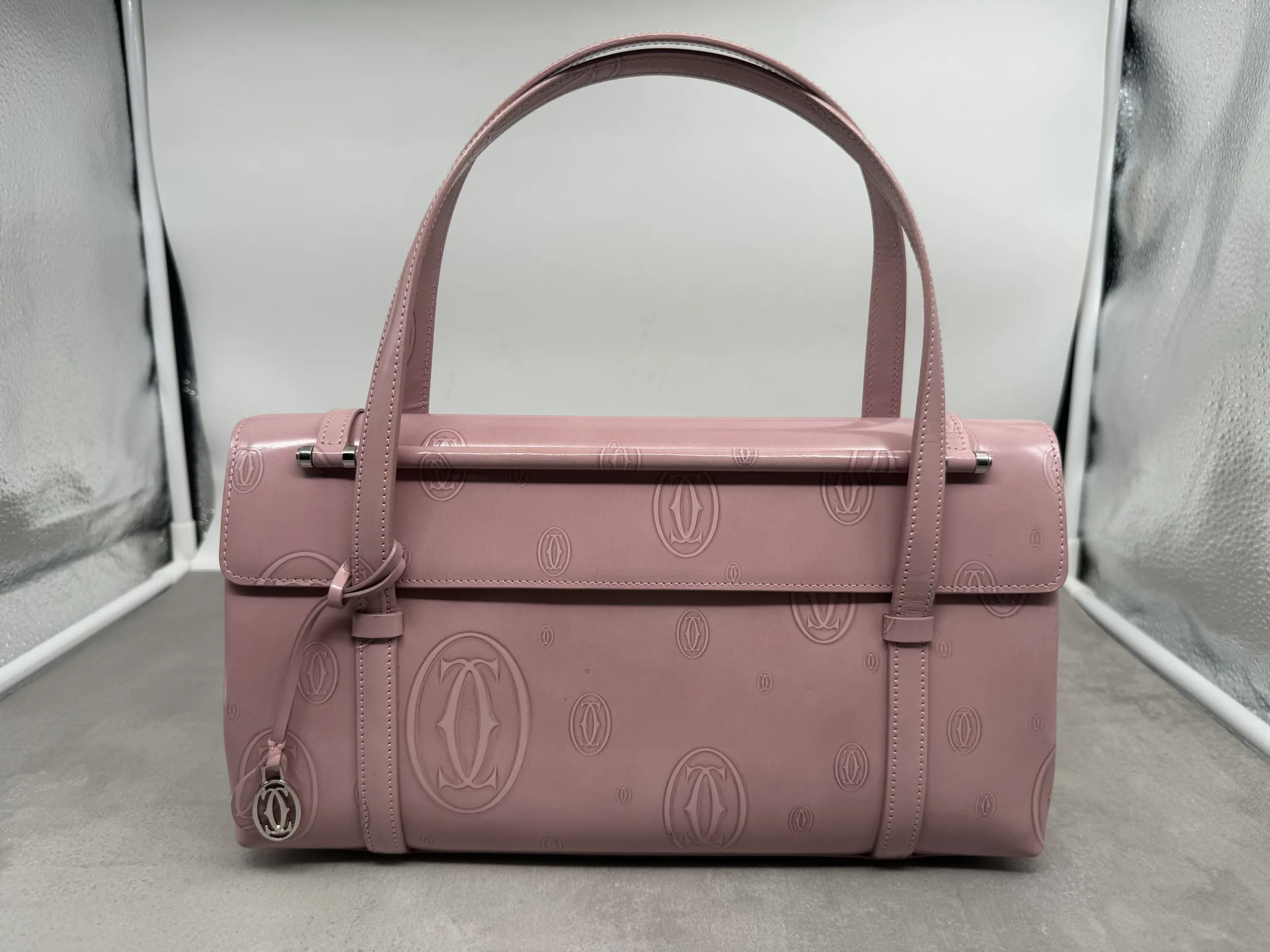 【買取】カルティエ ハッピーバースデー ハンドバッグ パテントレザー ピンク Aランク